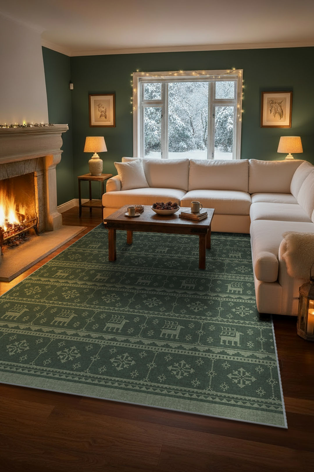 Rendier Dennengroen Vloerkleed